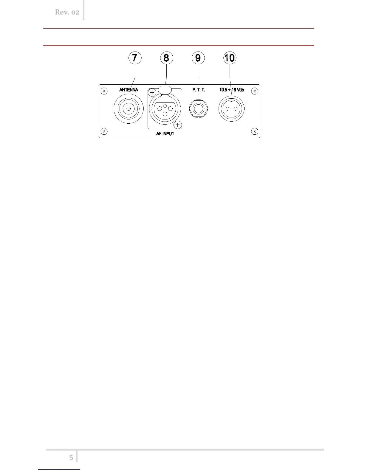 8) CONNECTOR: modulation audio input (XLR3-F type connector).