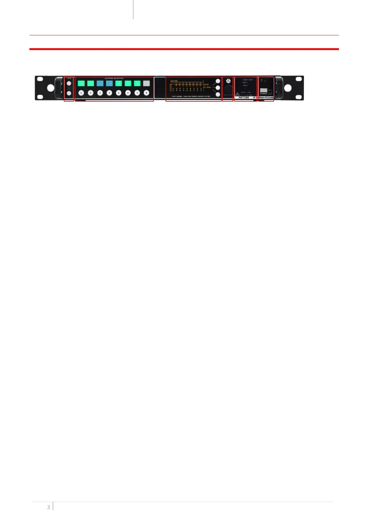 The front panel is functionally divided in the following section: