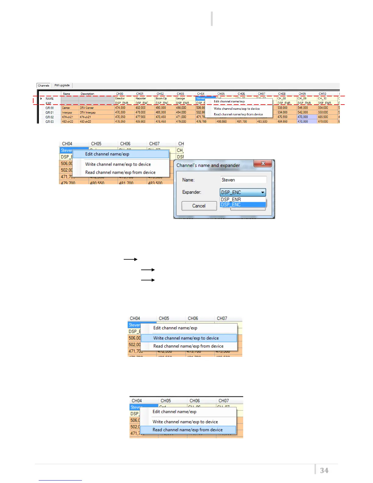 Select Write channel name/exp to device for write name and expander of the channel on the