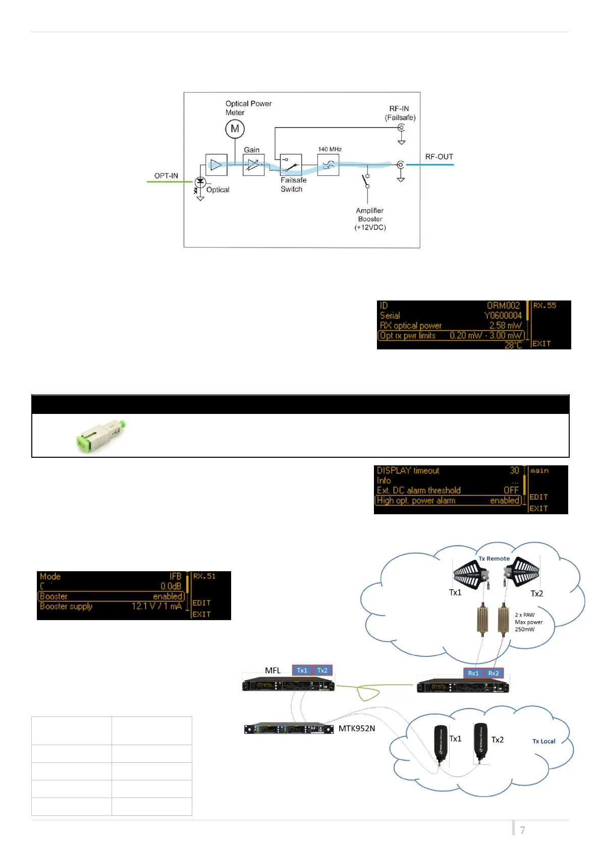 An alarm occurs on the display if detected power is out of this range. If the optical power received is too high, we