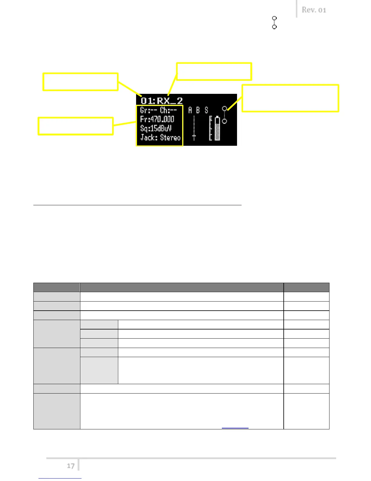 the INFO function shows many important features or information of MPR50-IEM receiver: