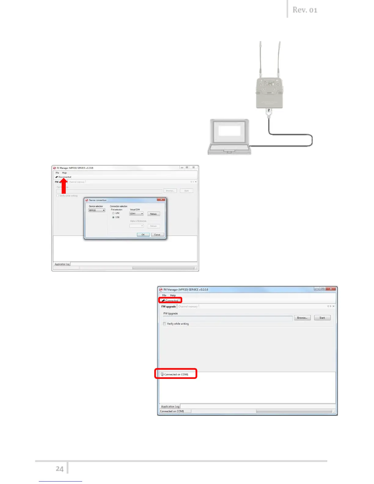 Instruction to connect MPR50 using USB cable: