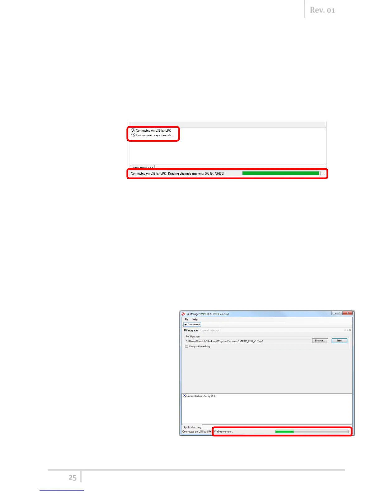 During the process of writing/reading & saving, a green bar below the panel shows the