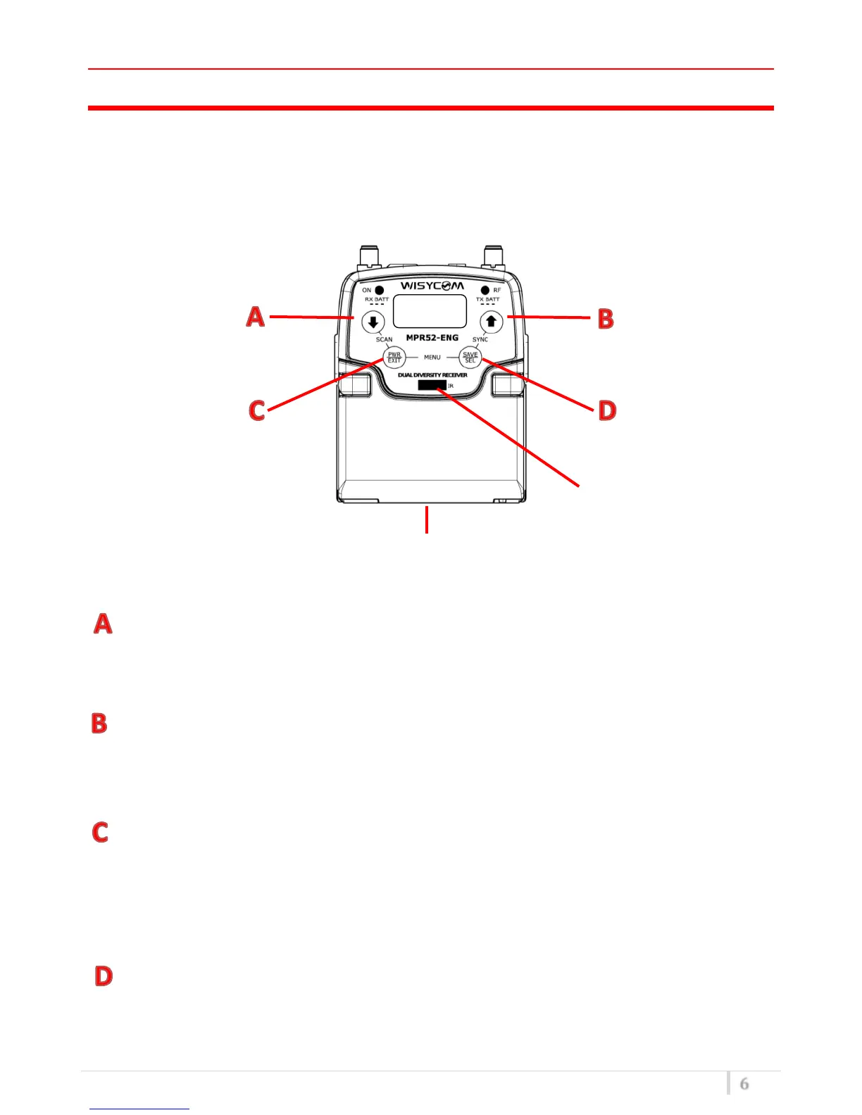 Push this button together with SAVE/SEL (D) to start a synchronization with a transmitter.