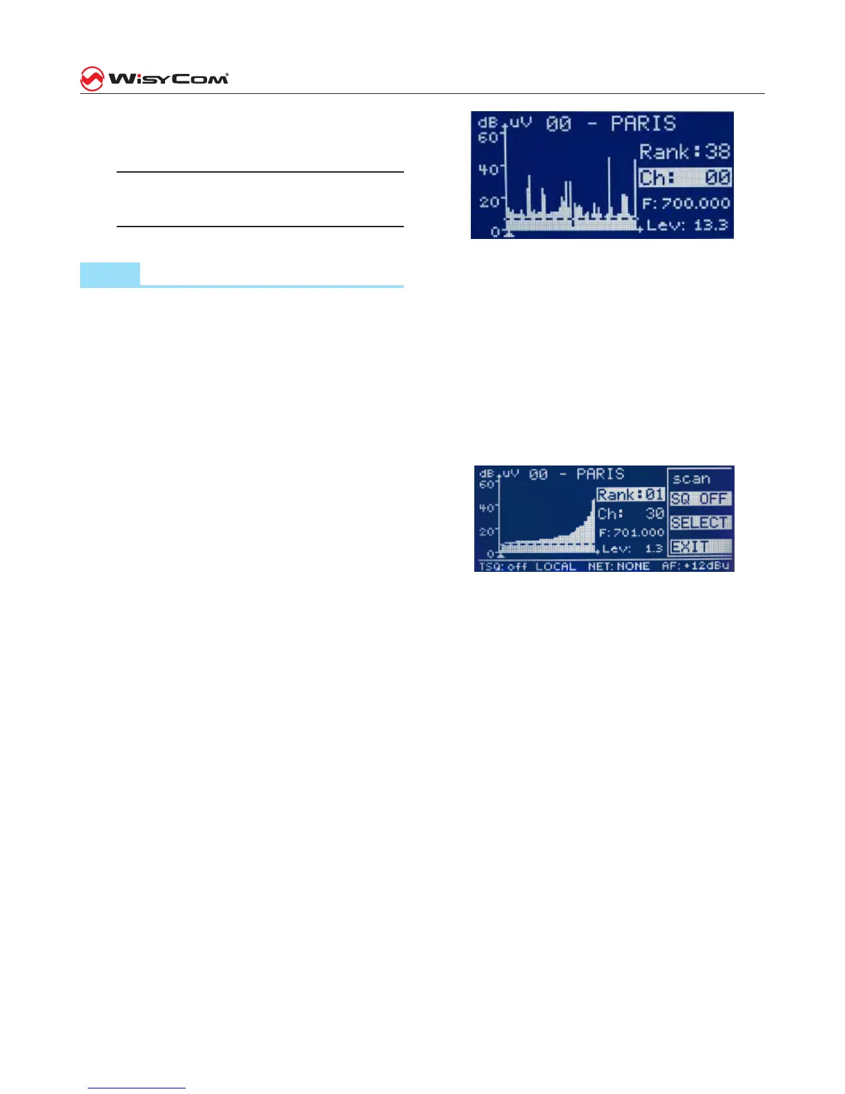 ordered by channel numbers, shows the RF levels in