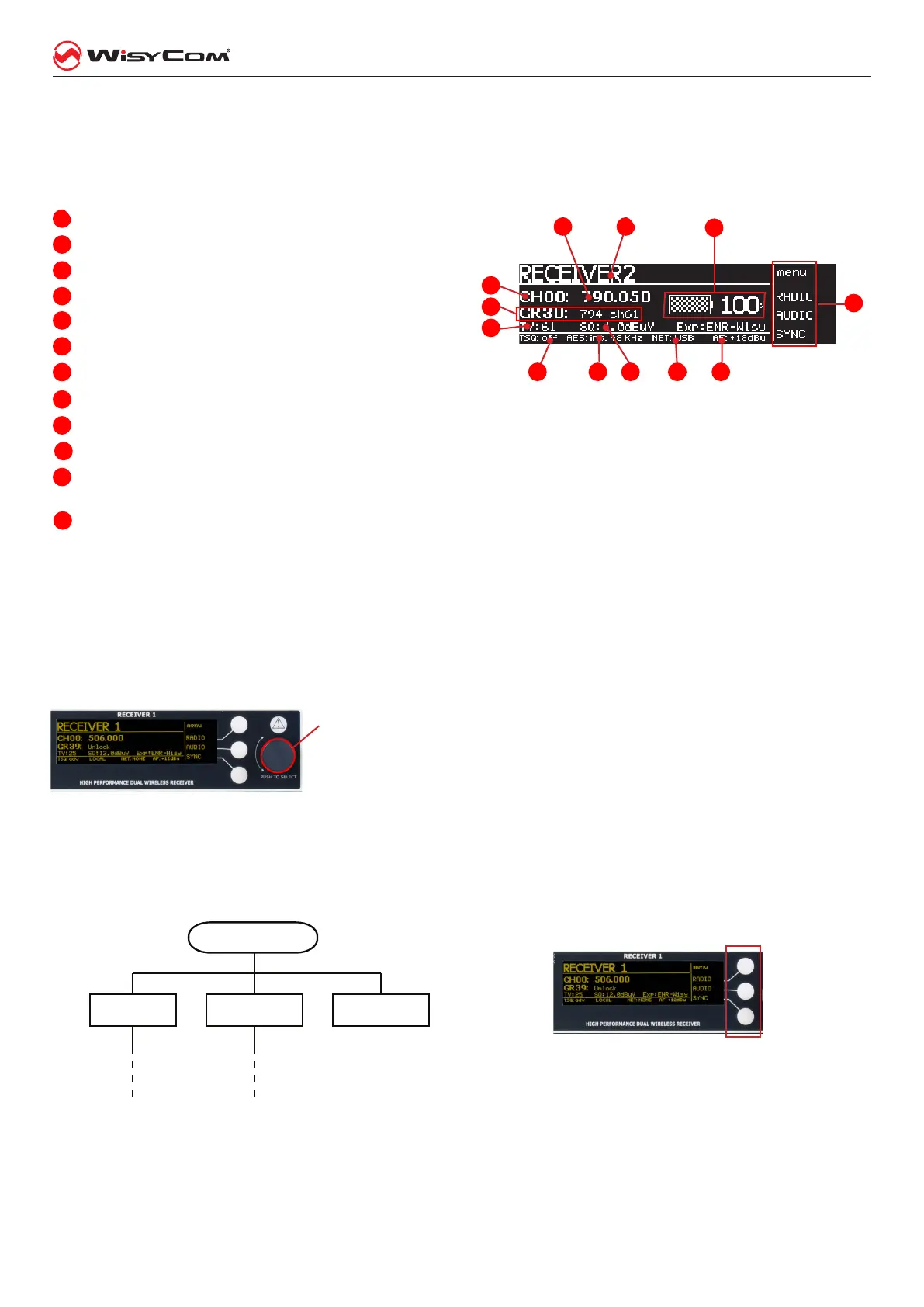 To access the conguraon menu of the receiver is necessary to press the rotary knob (at the right of the dis-