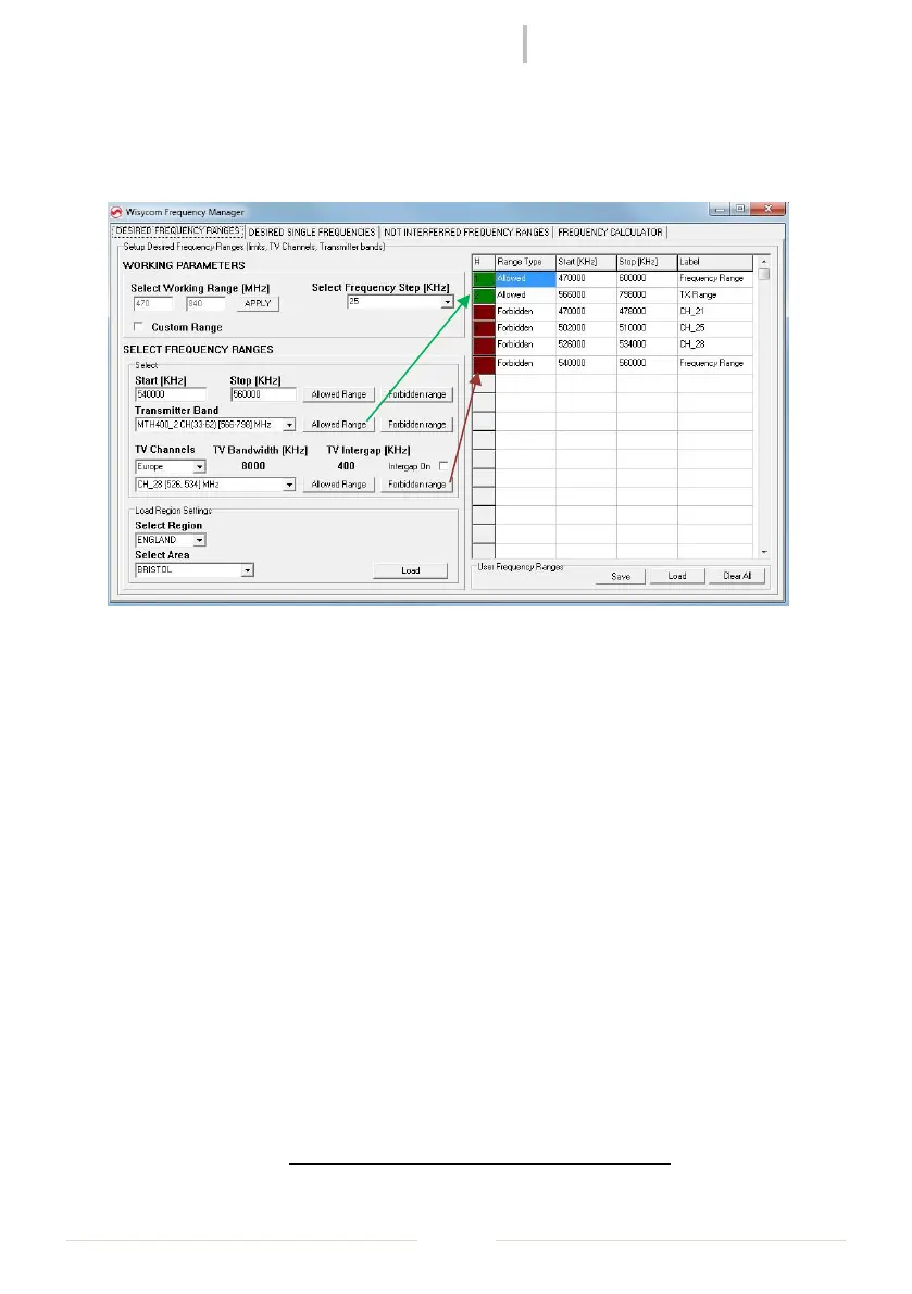 In “SELECT FREQUENCY RANGES” there are three possibility to set up the allowed and