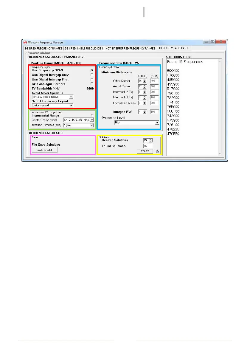 Select “FREQUENCY CALCULATOR” panel to set up the calculation of the frequencies and start