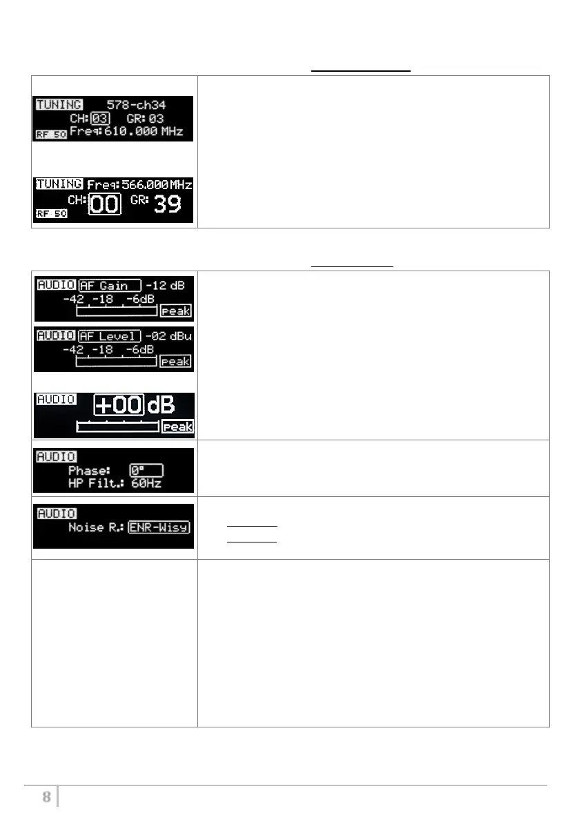 quickly in the audio gain menu. Note that the menu has a different