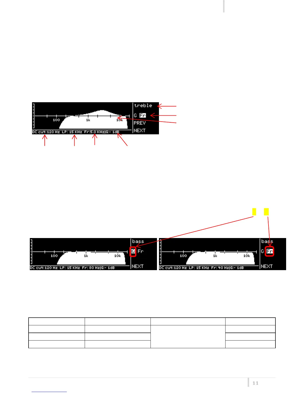 treble windows: allows to change gain and frequency of high frequencies