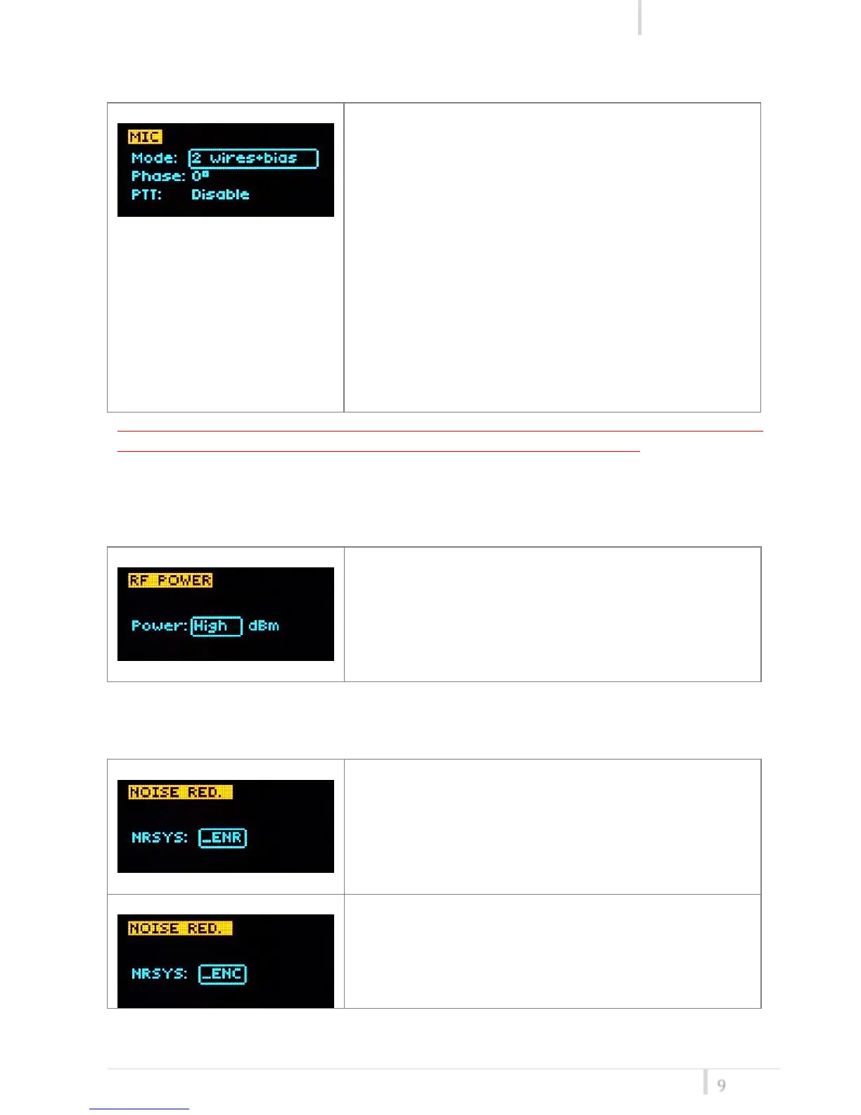 set one of the 5 MIC modes, only 2 wires or 2 wires+bias mode are possible.