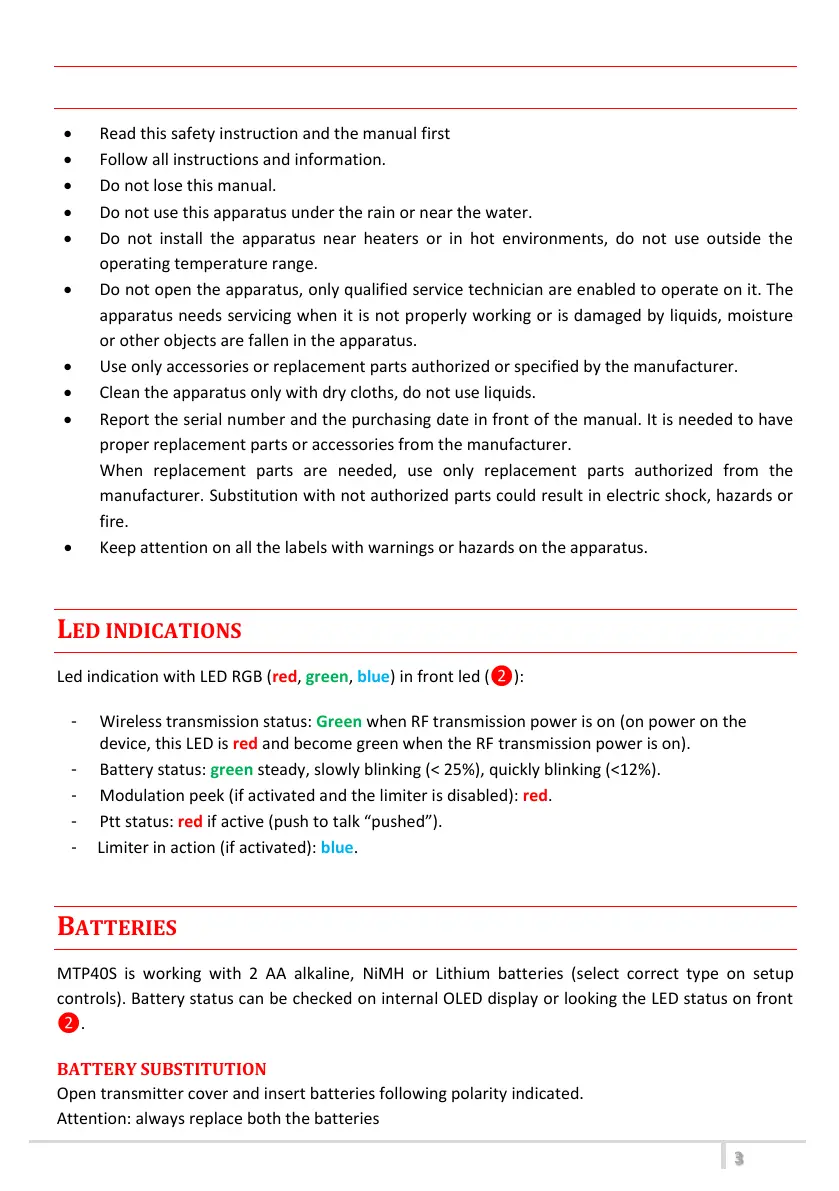 Led indication with LED RGB (red, green, blue) in front led (❷):
