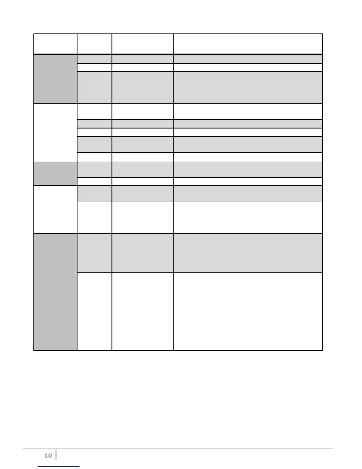 The following table sums up which parameters can be set and the related range settings.