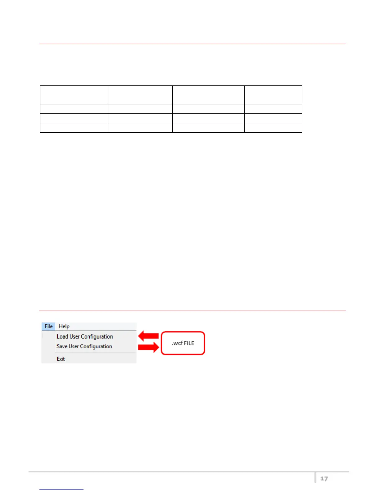 FACTORY and USER configurations (see table below).