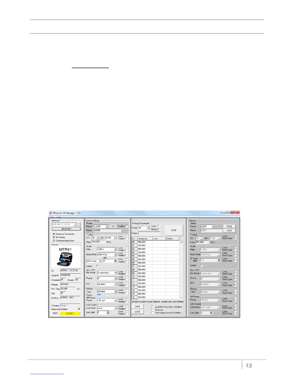 Wisycom TX Manager allows to read, modify and update the configuration of Wisycom transmitters.