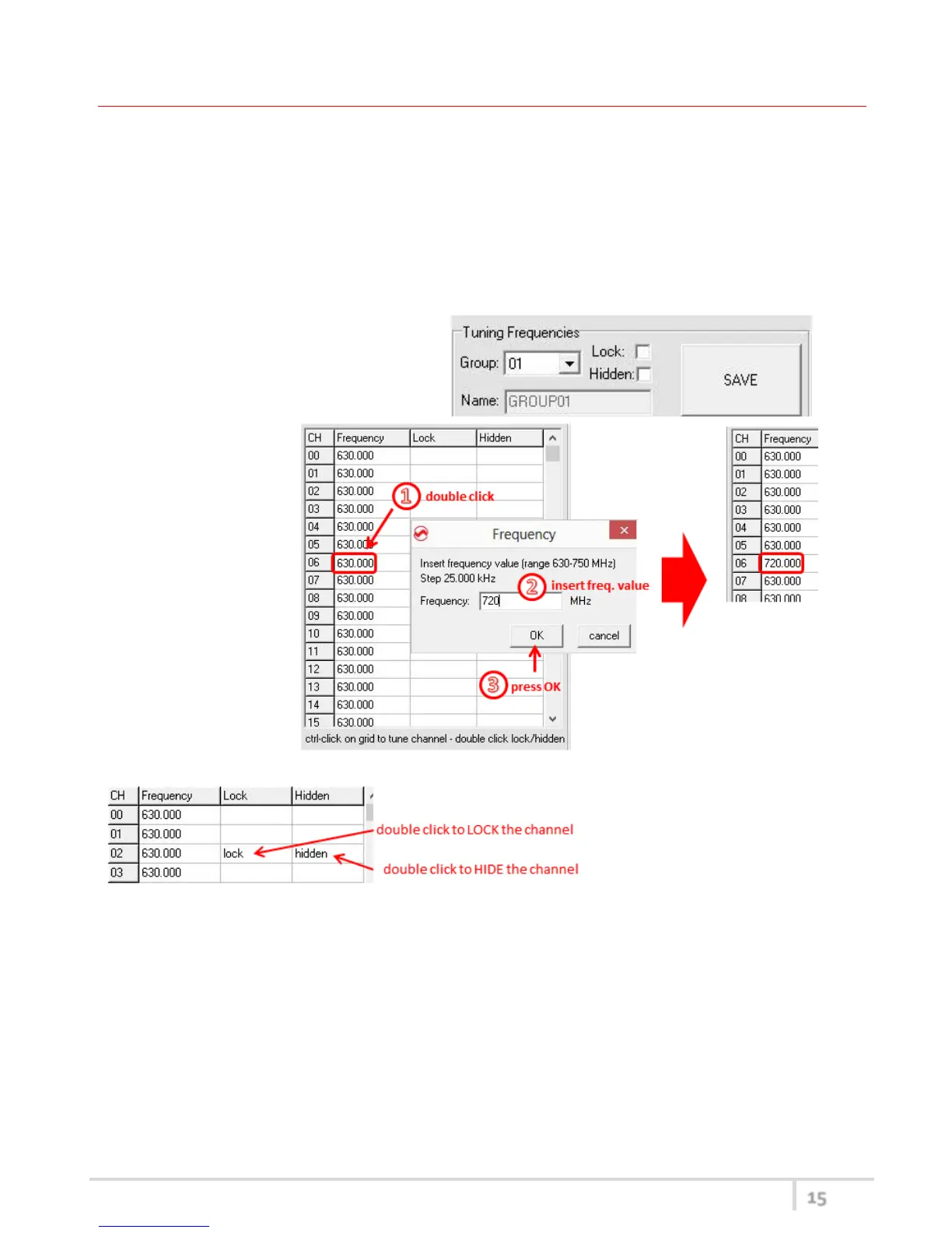 - for each channel (0 ÷59) of the selected group: change the frequency value and the