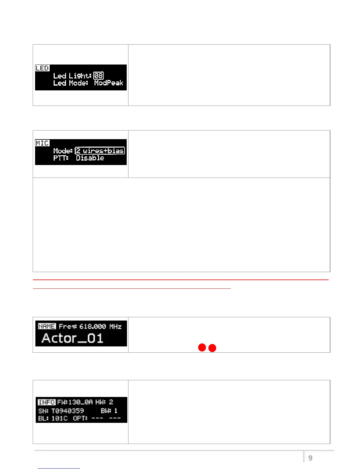 NOTE: For DPA option (2 pin microdot audio connector), even if the MIC mode menu allows to set one
