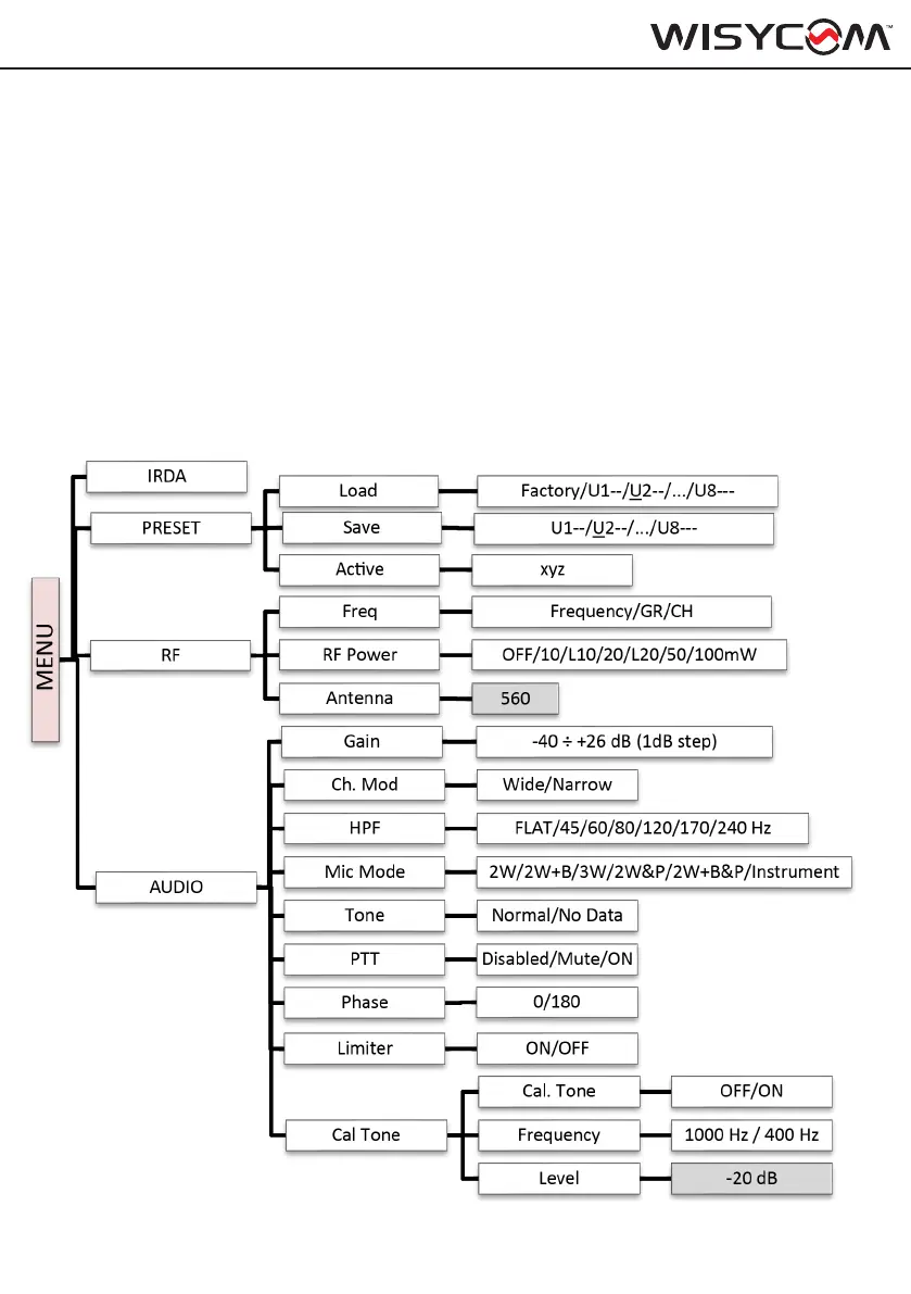 • set the gain, with the maximum input signal, avoiding the peak on the audio bar. TRY TO