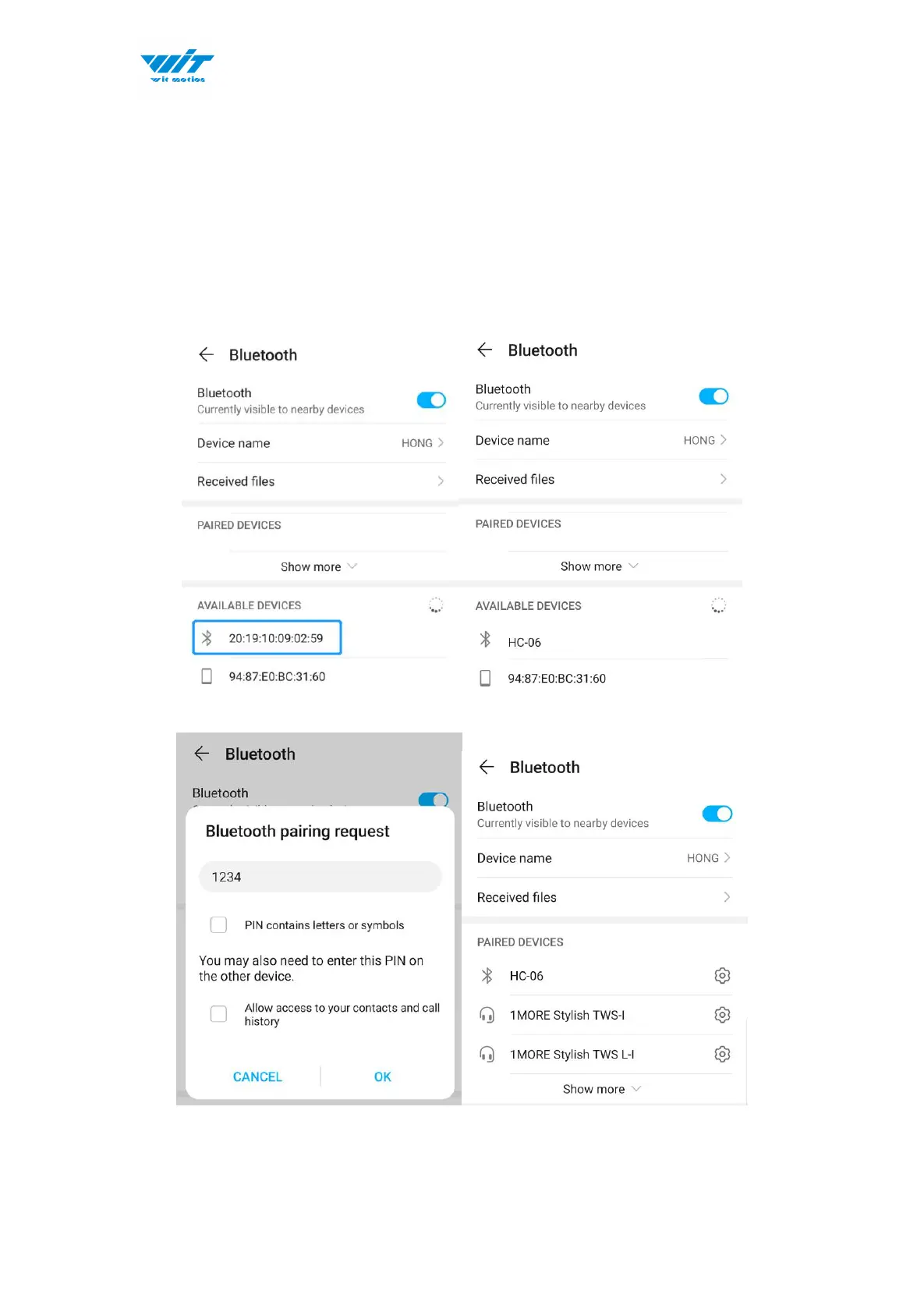 will be shown as HC-06 after successful pairing.)