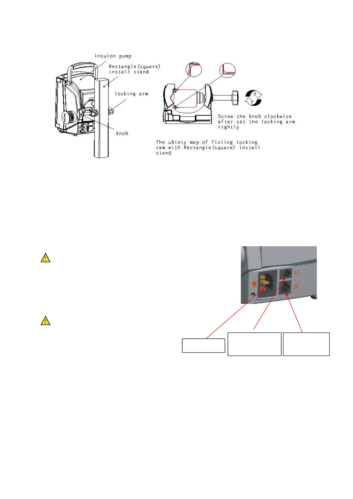 (1) Plug the corresponding plugs into the rear sockets of WIT-601 series infusion pump according to the