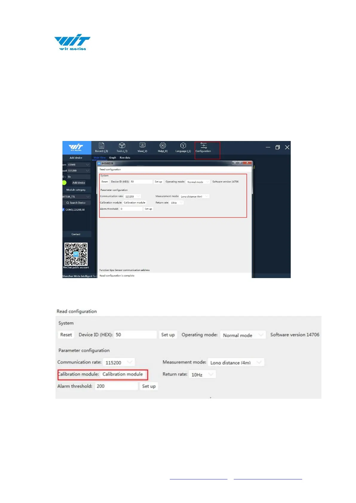 After connecting the sensor normally, click "Configuration" to select the
