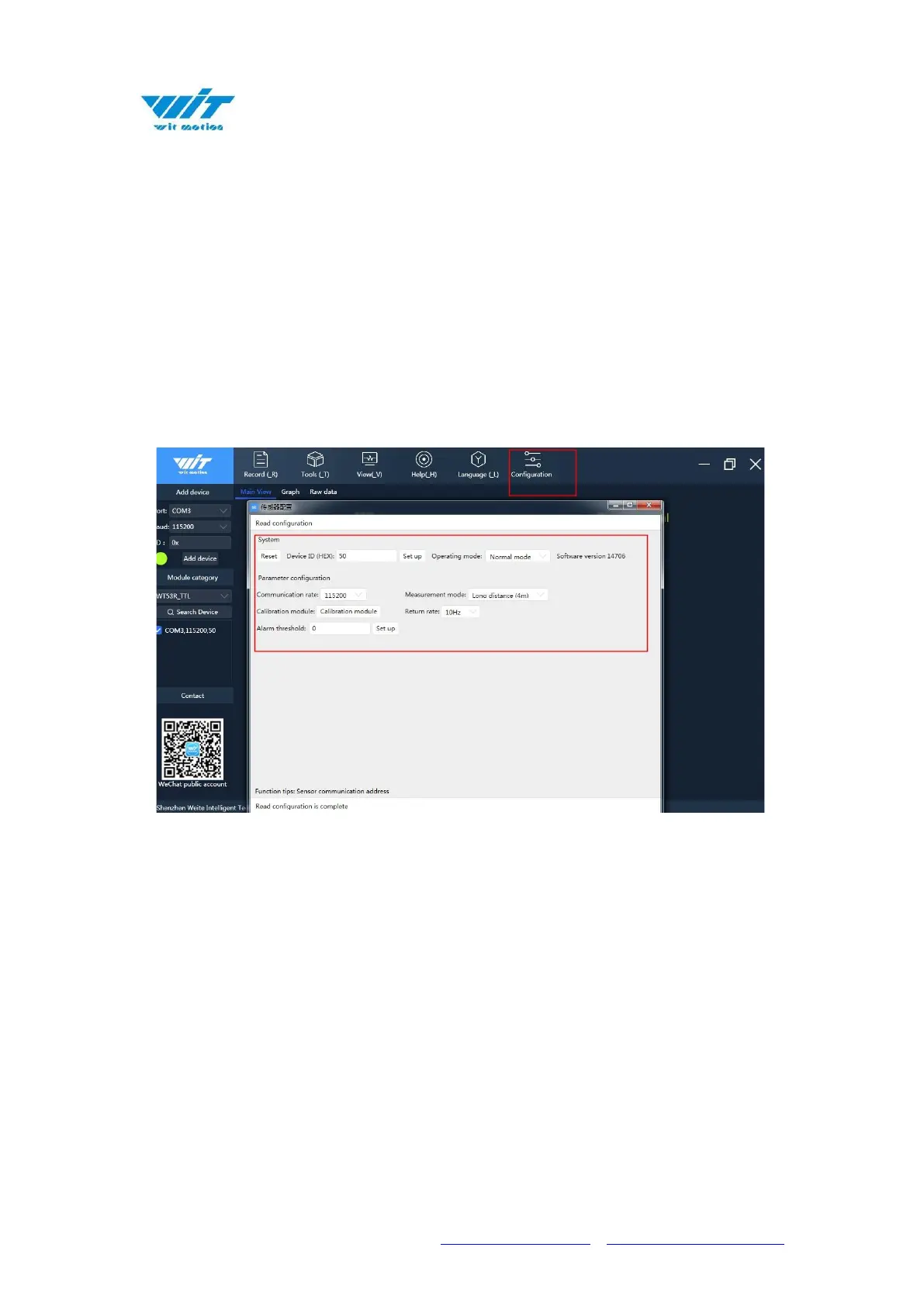After connecting the sensor normally, click "Configure" to select the