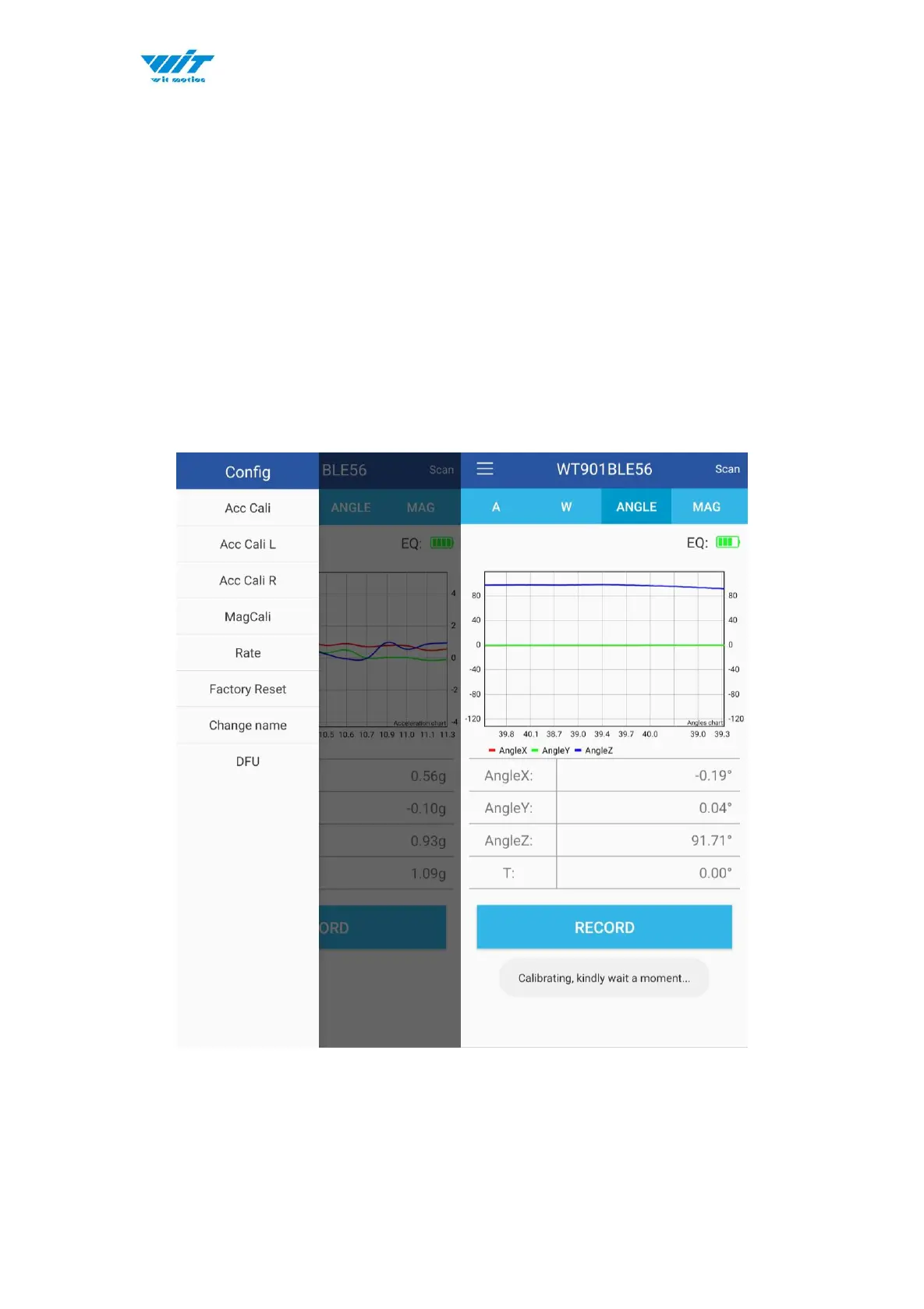 WiT WT9011DCL-BT5.0 - App Calibration; Acceleration Calibration