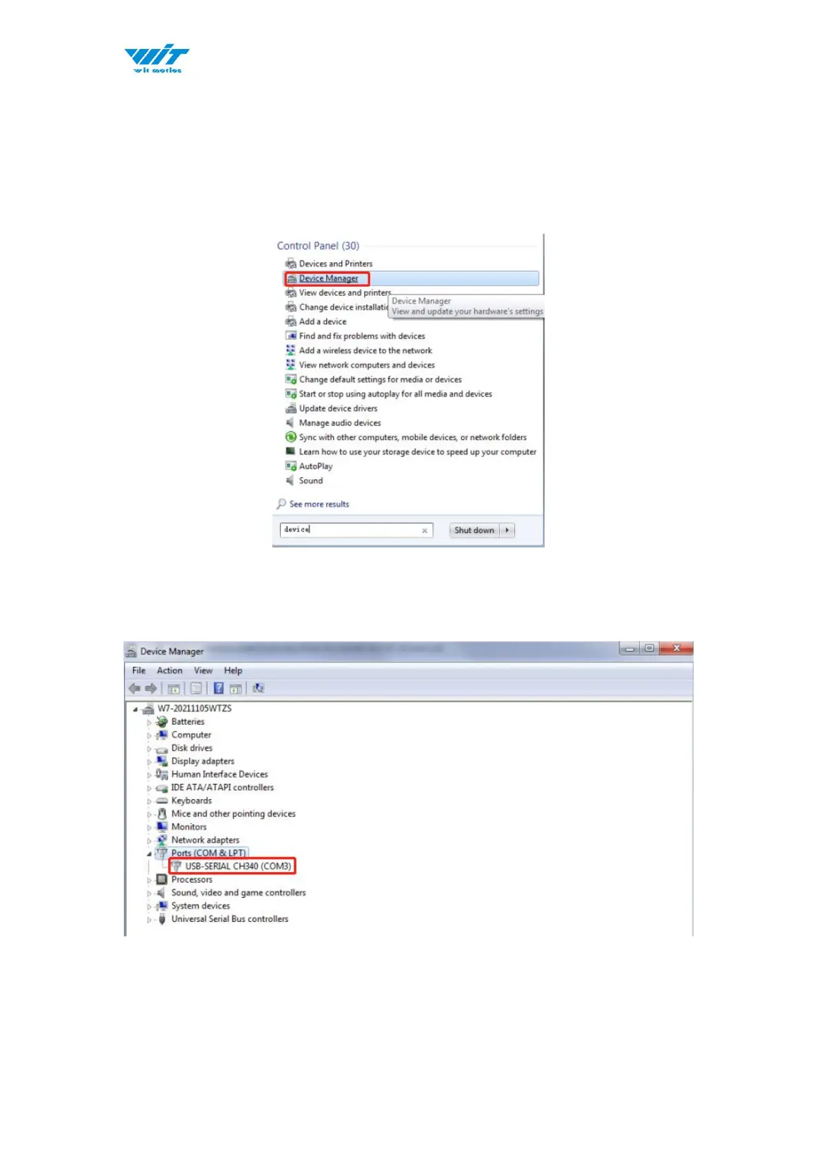 1)To check that the CH340 enumerates to a COM port, you can open the device