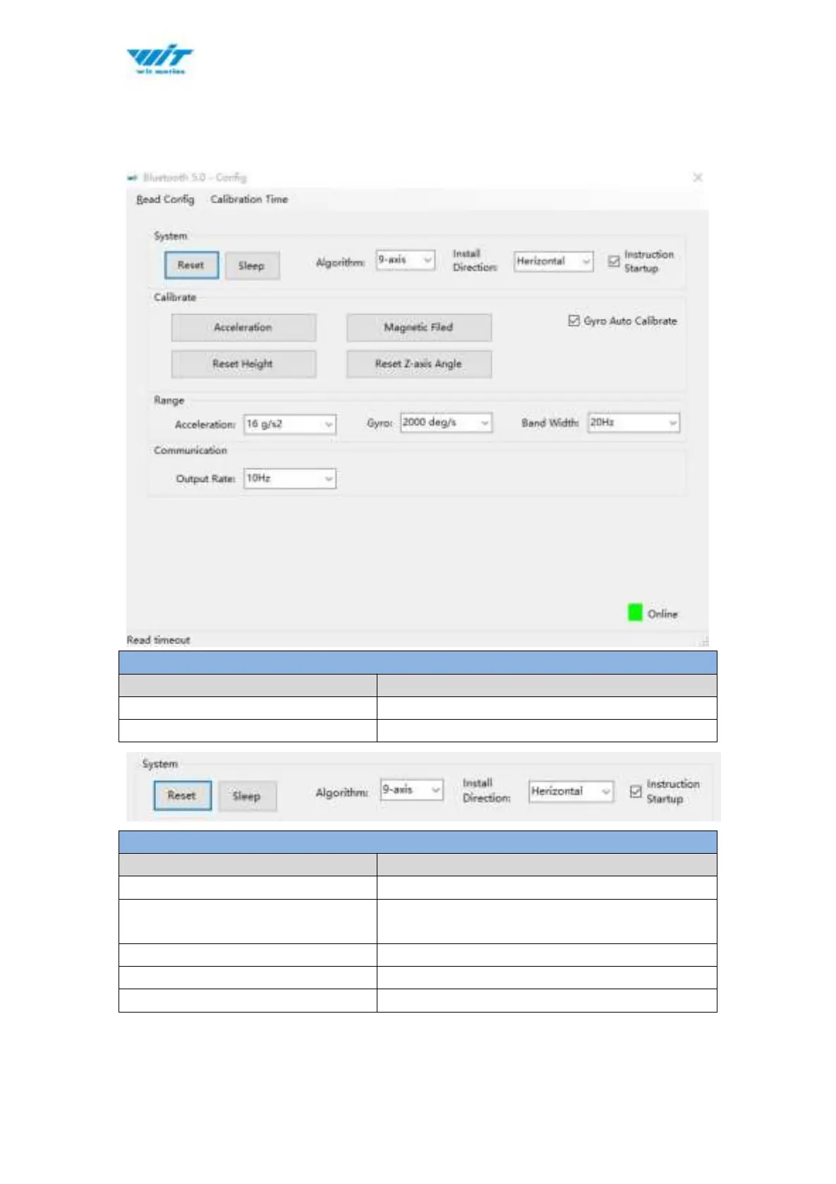 WiT WT901BLECL - Configuration Menu
