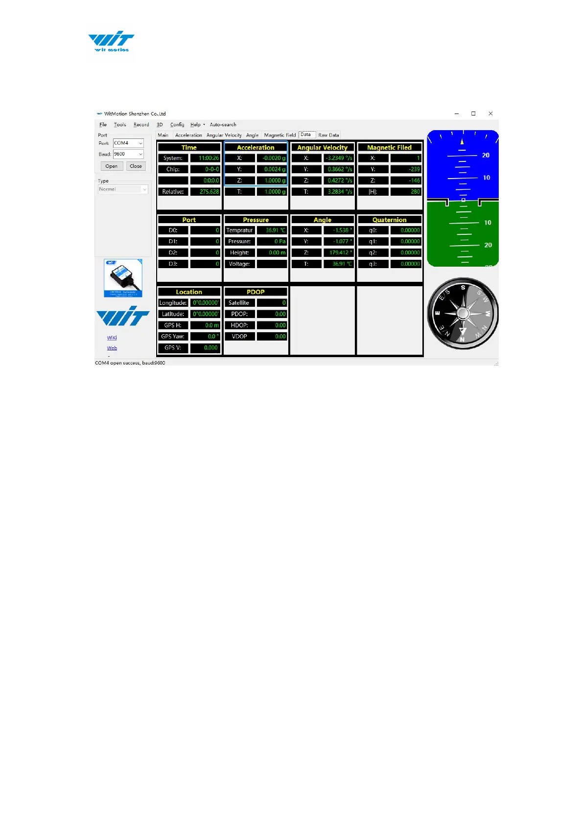 Step 5. Judge the result--confirm if there is 1g on Z-axis acceleration