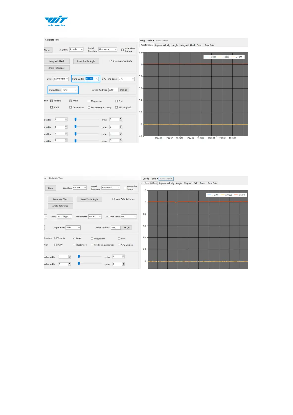For example, if the bandwidth setting is 20Hz, retrieval rate as 100Hz, there will
