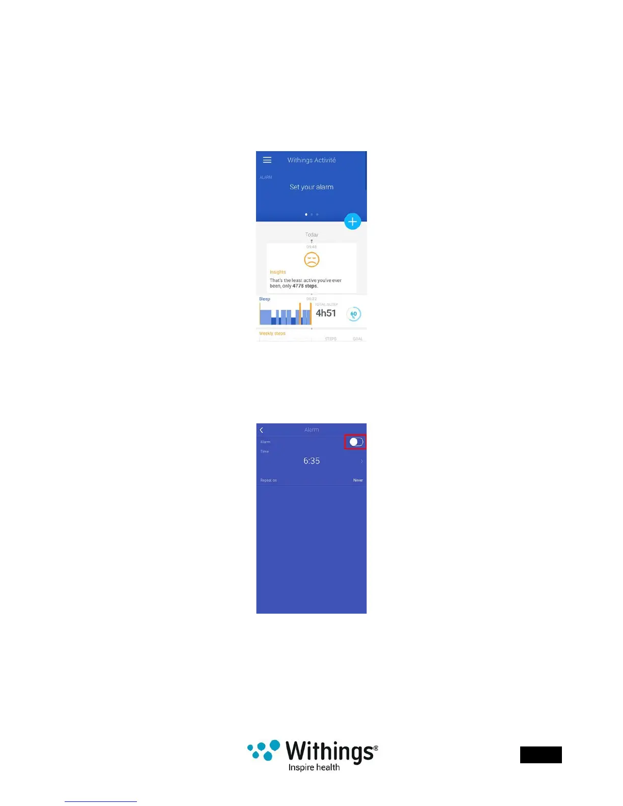 5. Tap the Alarm toggle to enable the alarm.
