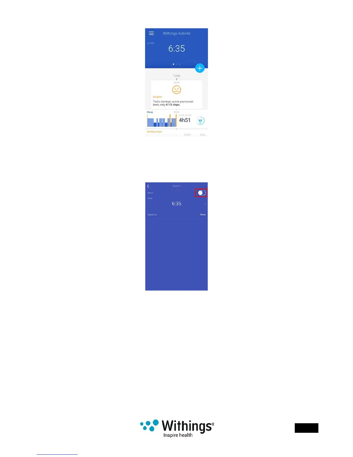 You can easily check the alarm by tapping the glass of your Withings Activité™ at least