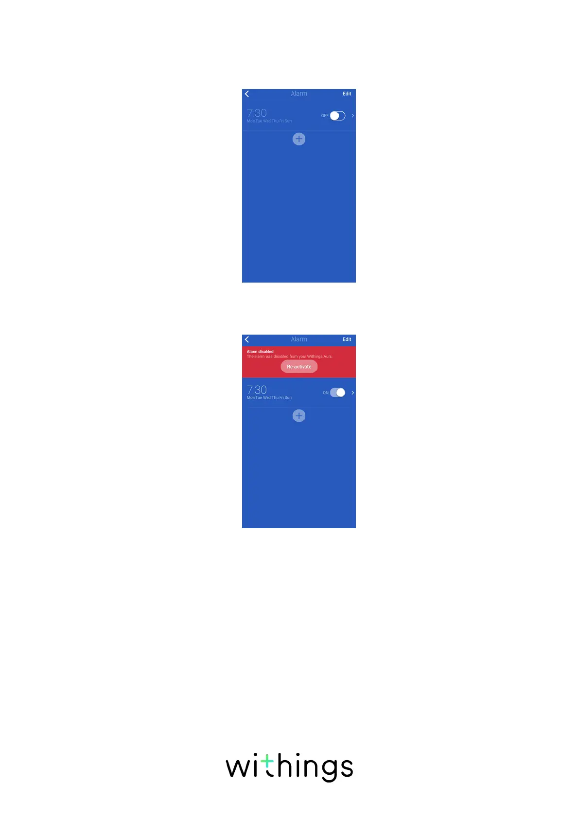 Alarms that have been disabled from the Withings Health Mate app can only be