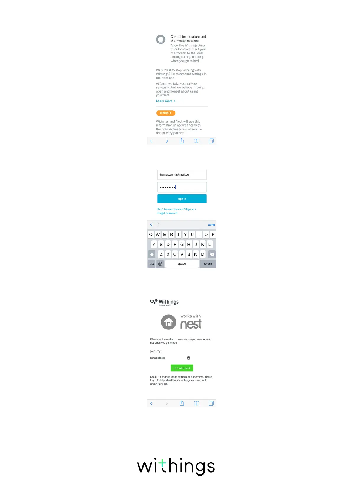9. Select the Nest Thermostat you want to link to your Withings Aura and tap