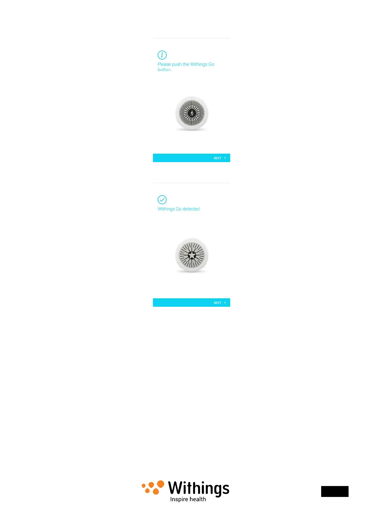 6. Press the center of the center of the screen of your Withings Go and tap Next.