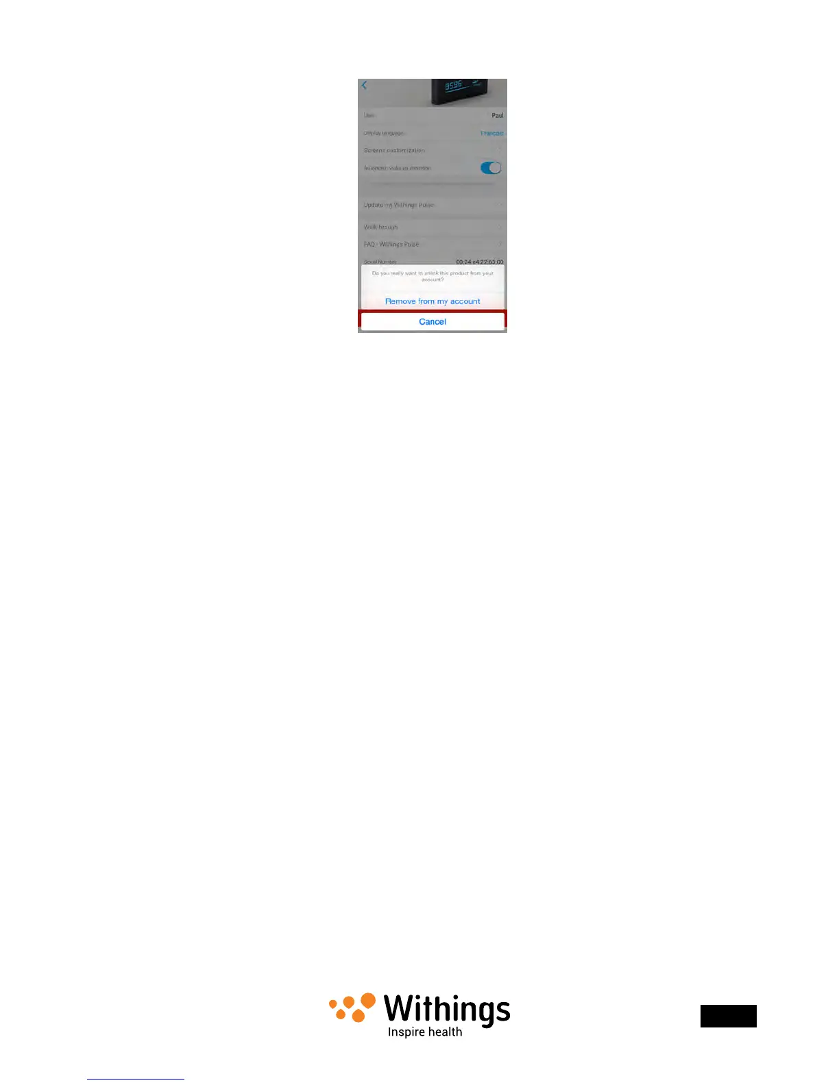 Withings Pulse - Dissociate Your Withings Pulse; Perform Factory Reset