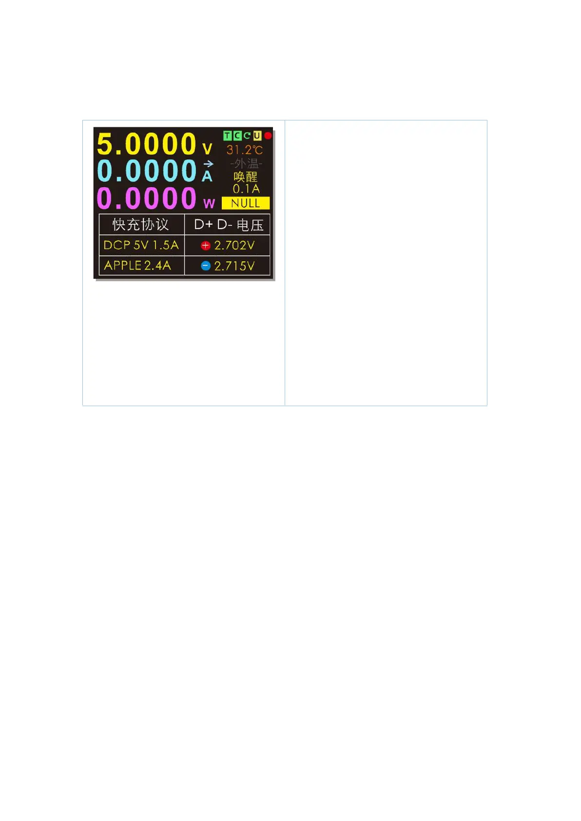 d+ d-voltage display: display the voltage on the current d+ and d-ports