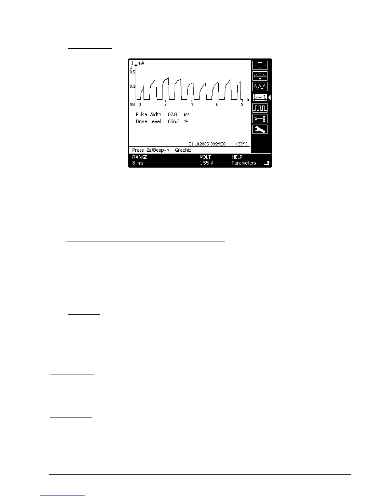 In addition, the pulse width and the chopping level (Drive Level) are displayed in numerical form.