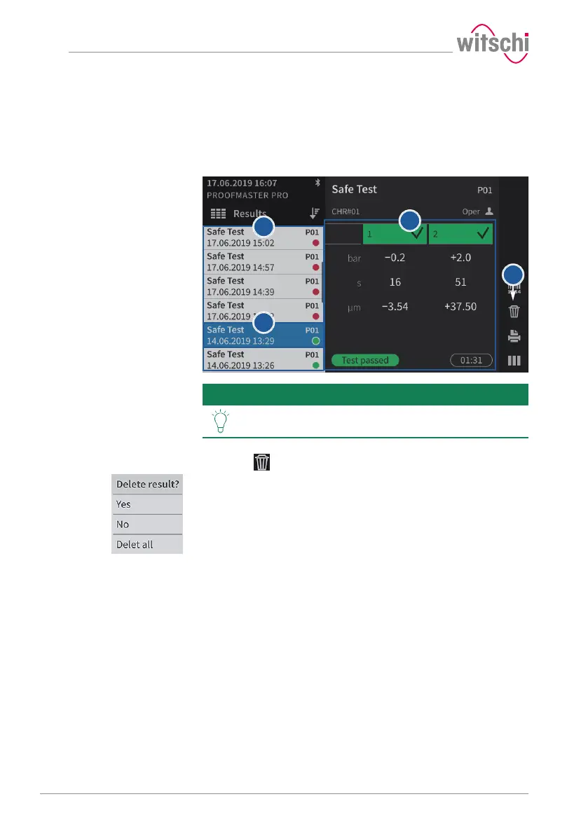 b) In the list, press the result that is to be deleted.