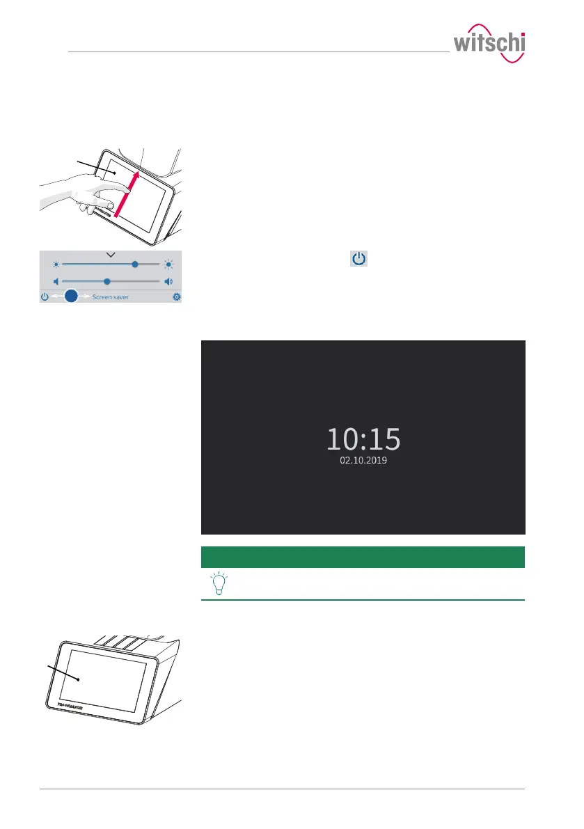 a) Touch the touchscreen 1 to exit "Standby" or "Screen saver" mode.