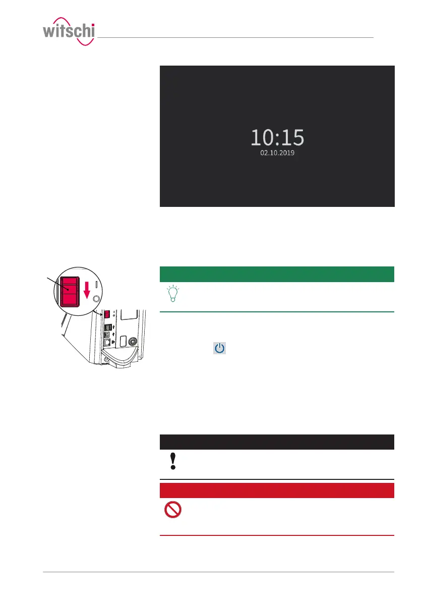 d) Switch off the ProofMaster by pressing the switch 1 in the