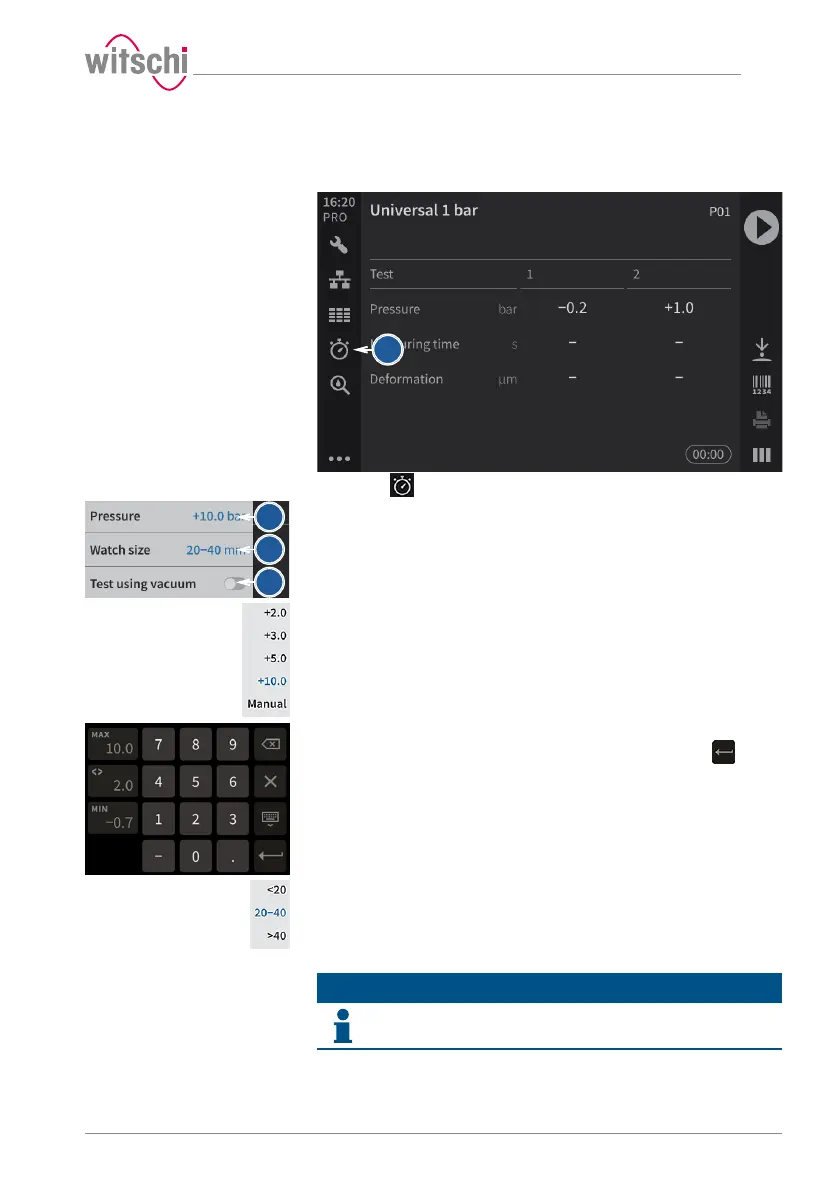 The pressure for the vacuum test is -0.3bar and cannot be changed.