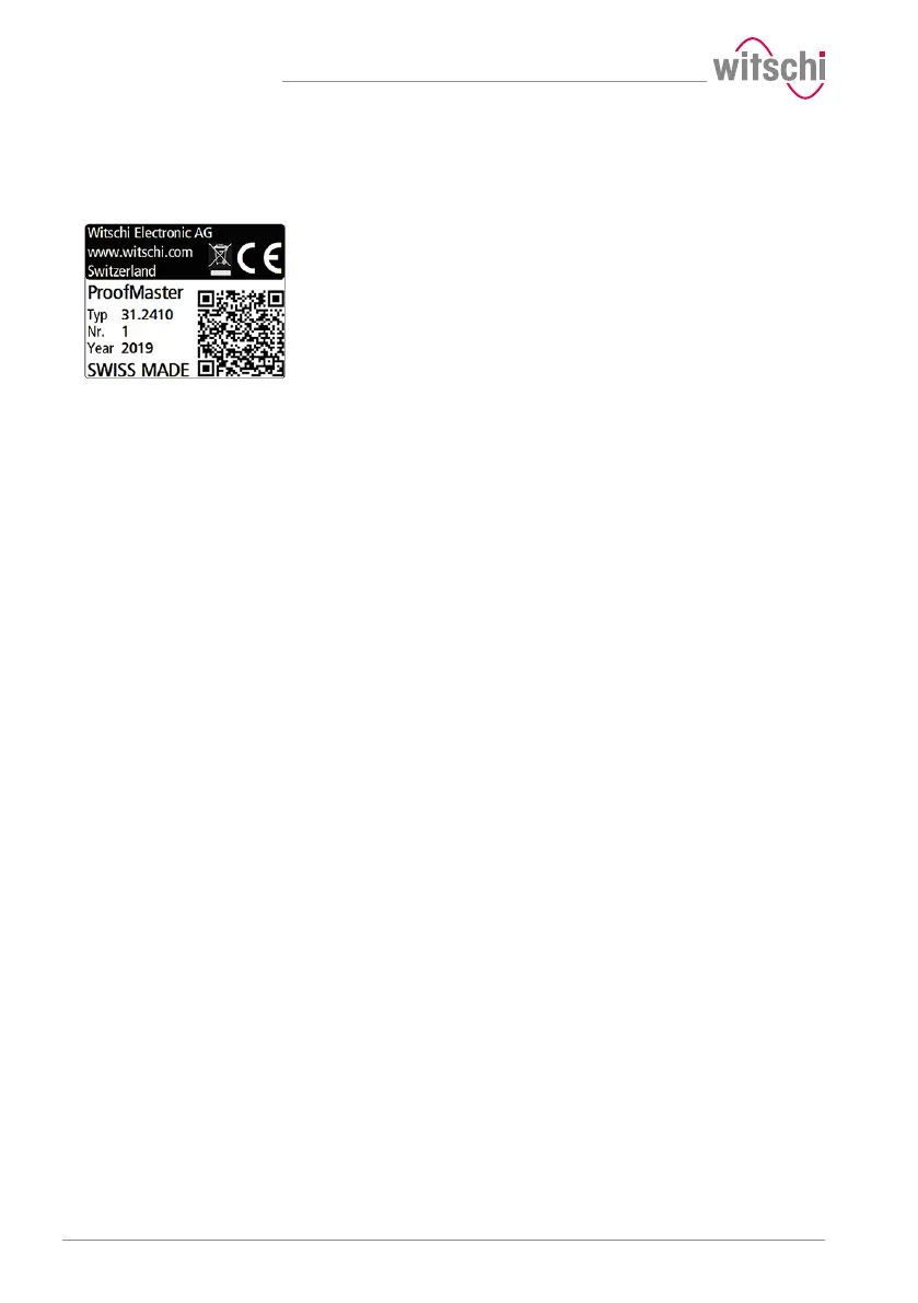 The rating plate of the ProofMaster is located on the reverse of the