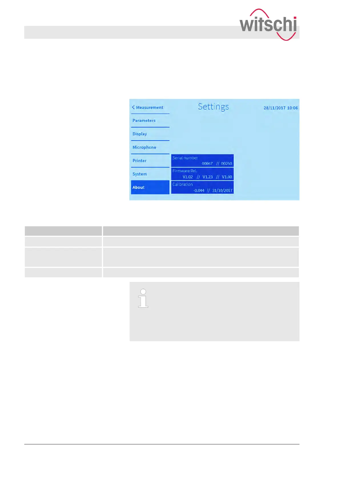 Firmware release Shows the current firmware software version: