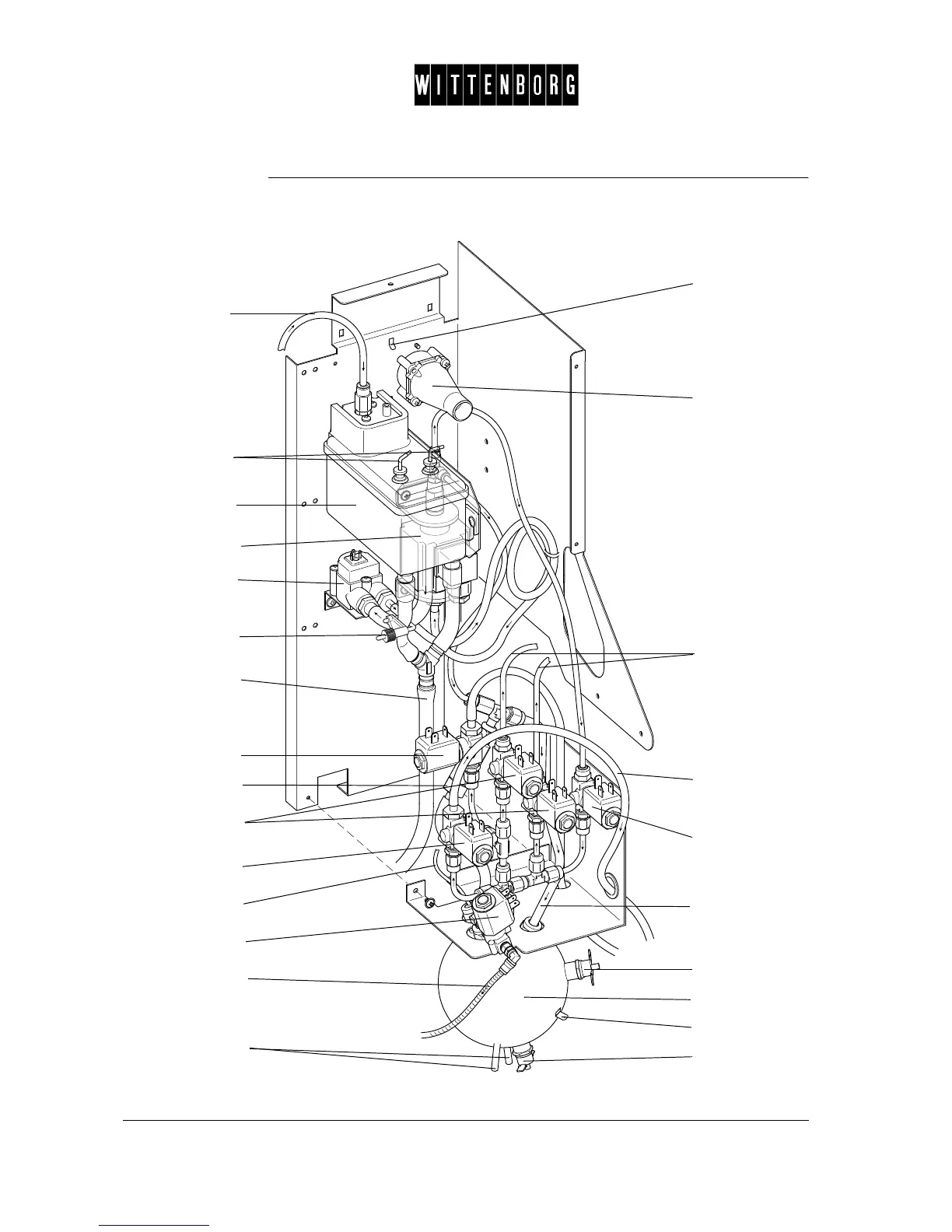 Components The illustration shows the location of the espresso water system compo-