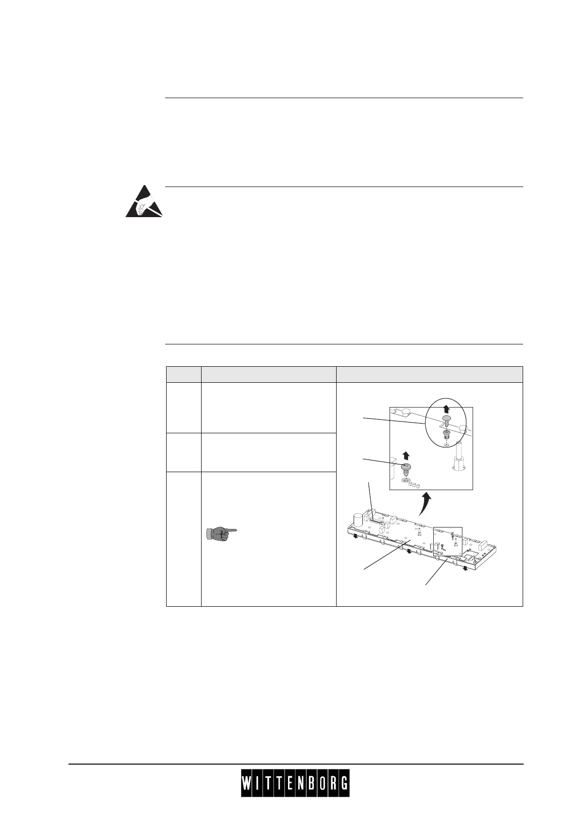 • Always wear an anti-static wrist wrap when handling PCBs or