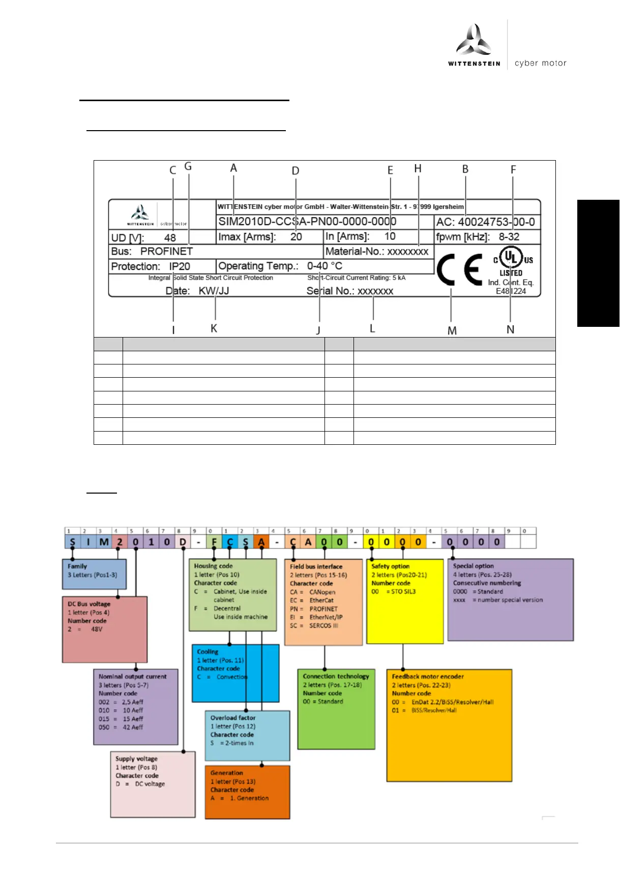 Table 3.1: Identification plate (sample values)