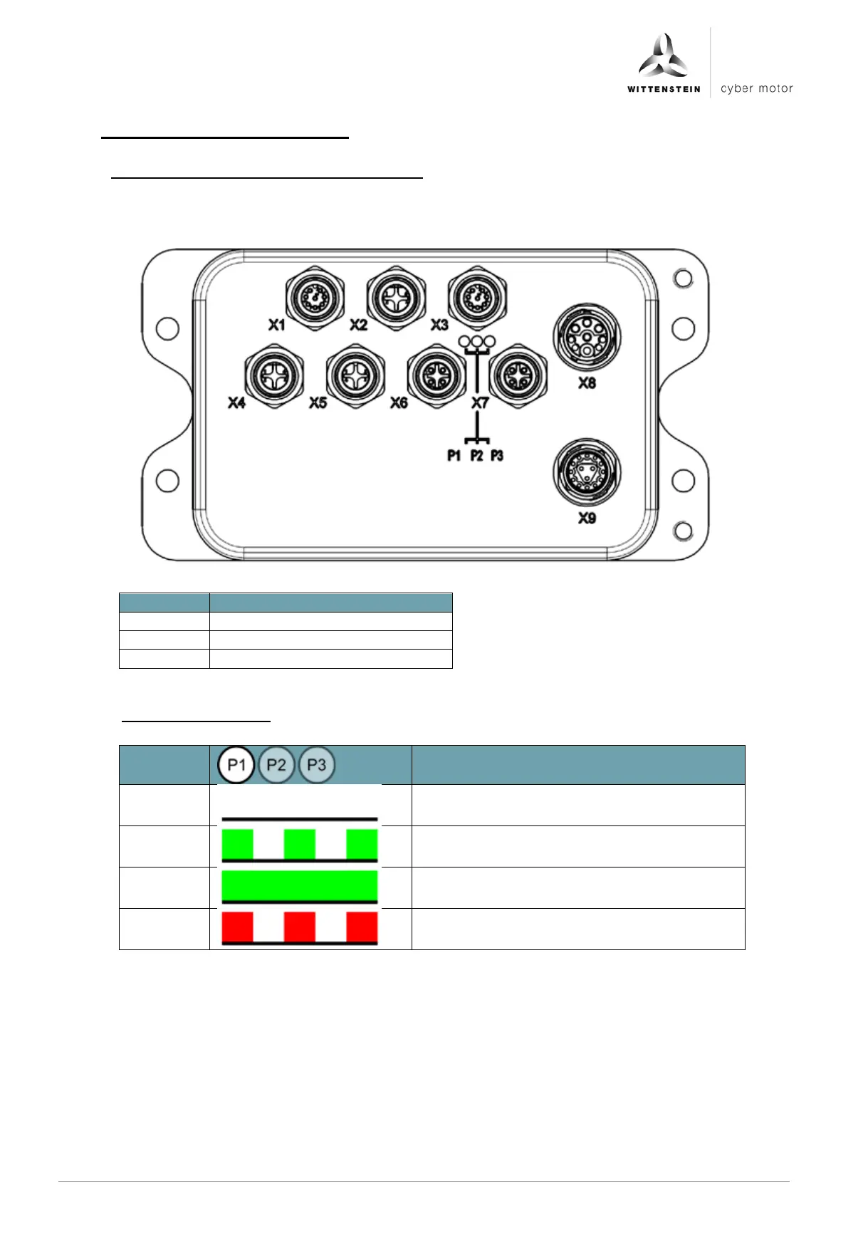 Three multicolor LEDs (P1-P3) in the colors green and red are available on the drive