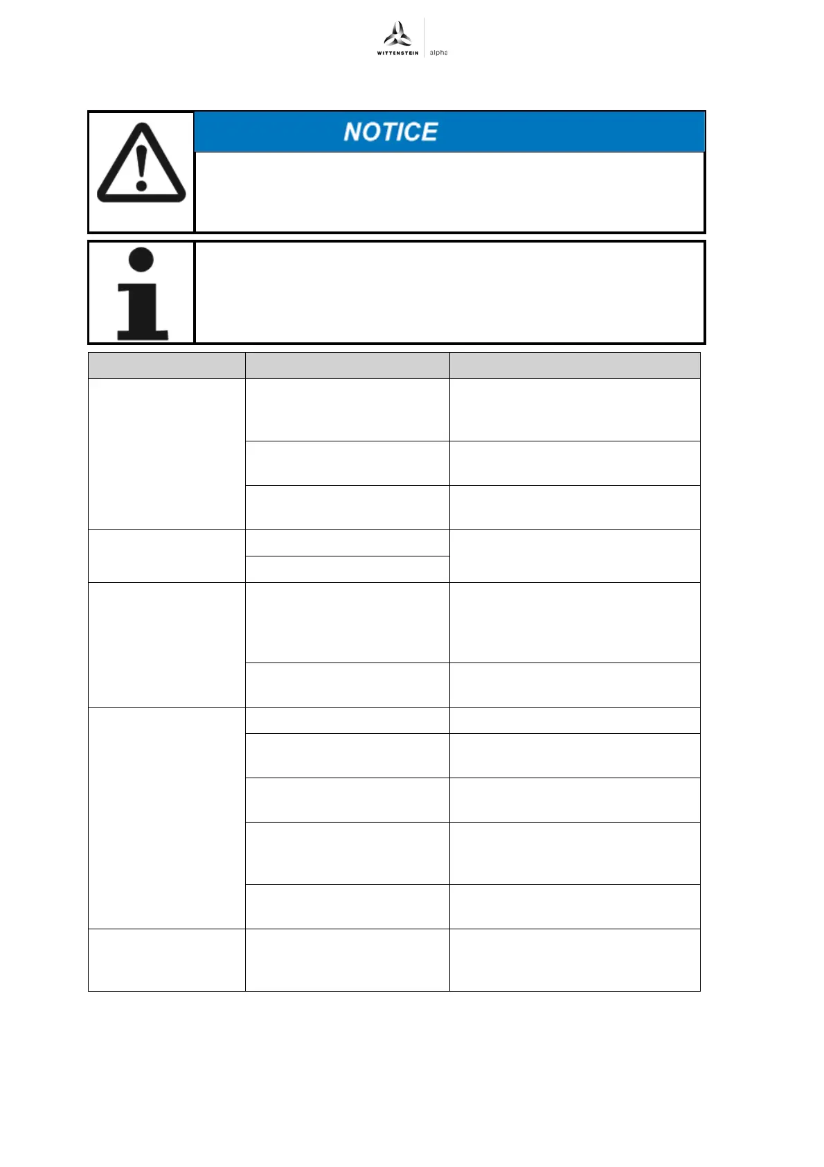 Fault Possible cause Solution